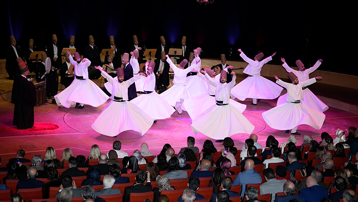 Programın en etkileyici anlarından biri, Mevlânâ Celâleddîn Rûmî’nin manevi mirasını yansıtan sema mukabelesi oldu.Konya Türk Tasavvuf Müziği Topluluğu tarafından icra edilen tasavvuf musikisi eşliğinde gerçekleştirilen sema töreni, izleyenlere adeta ruhani bir yolculuk yaşattı. Zikir meclisi, aşr-ı şerif tilaveti ve sema gösterisiyle salonda derin bir manevi atmosfer hâkim oldu.