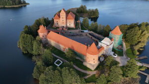 Şehrin simgesi Trakai Kalesi, gölün ortasındaki konumuyla ziyaretçilerine masalsı bir manzara sunuyor. Dron ile yapılan çekimler, kalenin tarihi dokusu ve çevresindeki doğal güzellikleri gözler önüne seriyor.