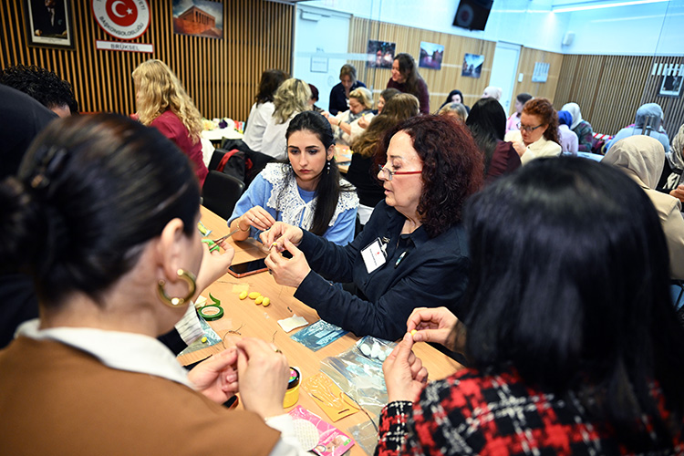 BRÜKSEL'DEKİ başkonsolosluk binasında gerçekleştirilen atölye çalışmasında, El Sanatları ve Nakış Öğretmeni Nazan Hüveyda Şenkul, katılımcılara ipek kozasının işlenmesi ve el sanatlarında kullanımına ilişkin bilgiler aktardı.Kadın katılımcılar, ipek kozalarını kullanarak kendi el emeği sanat ürünlerini ortaya çıkardı, yaka iğnesi yaptı.